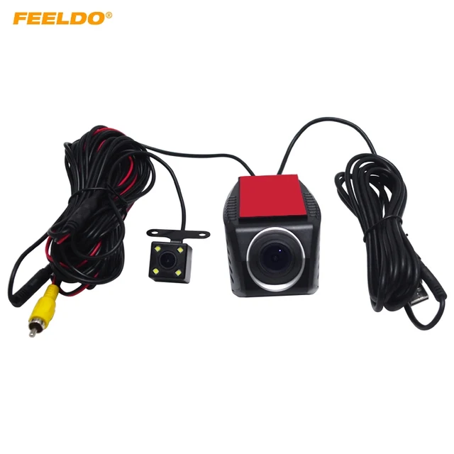 Special Offers FEELDO Car Front/Rear USB Digital Dual Video Recorder 720P HD DVR Camera With LED Light For Car Android Navigator Headunit