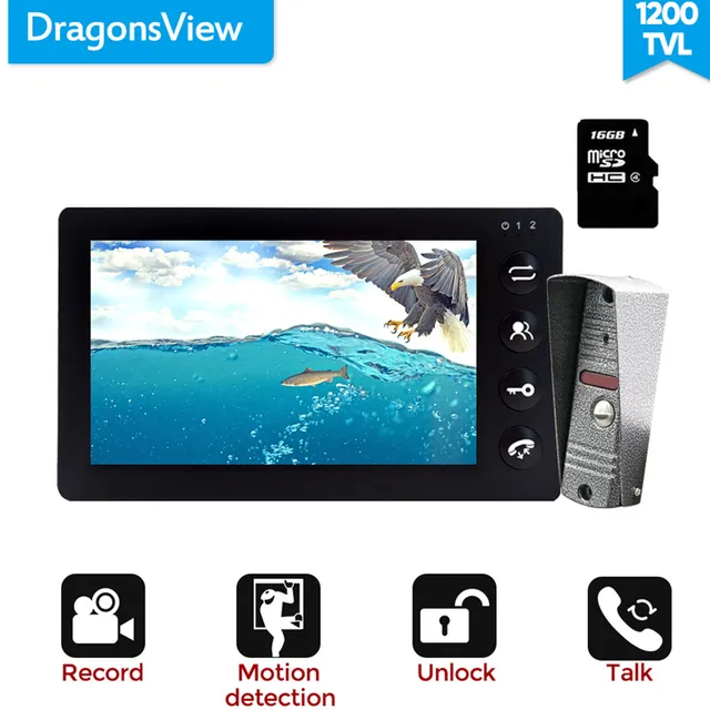 Special Price Dragonsview 7 Inch Video Intercom Video Door Phone Doorbell Intercom Recording Function 16GB SD Card Motion Alarm 1200TVL Unlock